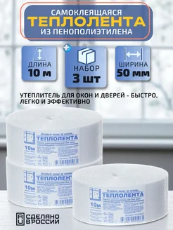 Уплотнитель, теплолента для окон самоклеящаяся. Набор 3 шт