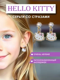 Хэллоу Китти Hello Kitty серьги cо стразами для девочек
