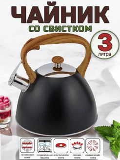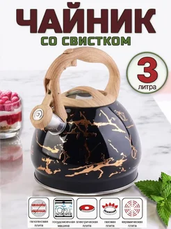 Чайник со свистком для газовой плиты эмалированный 3 л