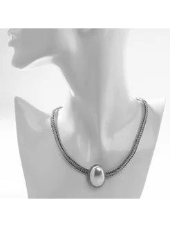Колье «Жемчужина» овал, цвет белый в серебре, 40 см