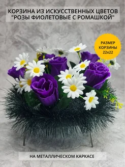 Полянка ритуальная "Розы фиолетовые с белой ромашкой"