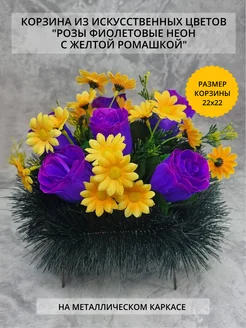 Ритуальная поляна "Розы фиолетовые с желтой ромашкой"