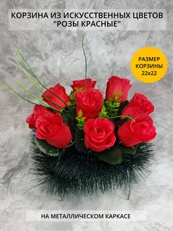 Ритуальная поляна корзина на кладбище "Розы красные 18шт."