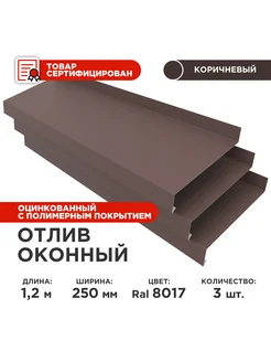 Отлив оконный 250мм коричневый Длина 1 2м 3 шт
