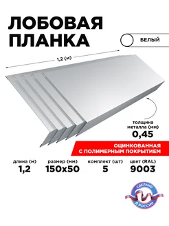 Лобовая планка для кровли 150х50 Белый 9003 Длина 1 2м 5 шт