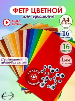 Цветной фетр для творчества 1 мм с глазками