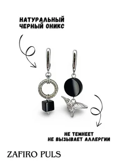 Серьги асимметричные с натуральным черным ониксом