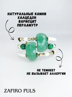 Браслет каучуковый с натуральным халцедоном и варисцитом