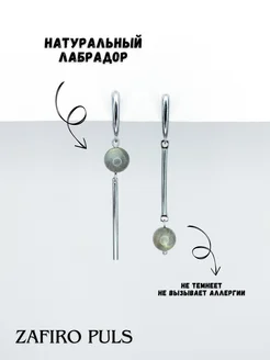 Серьги асимметричные с натуральным лабрадором