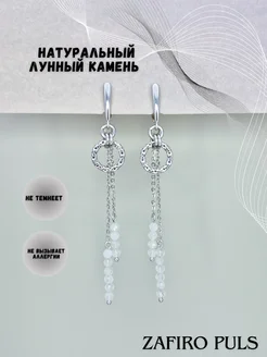 Серьги длинные с натуральным лунным камнем