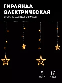 Гирлянда новогодняя штора Звезда занавес на окно