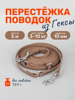 Поводок перестежка из Гексы 5 м 10 мм. капучино. Бобик