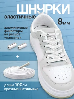Широкие эластичные шнурки с фиксаторами Белые
