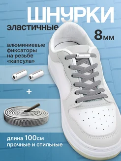 Широкие эластичные шнурки с фиксаторами Серые