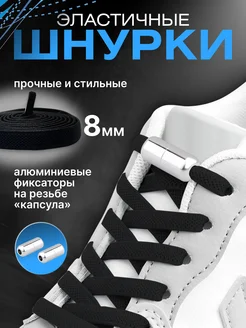 Широкие эластичные шнурки с фиксаторами Черные