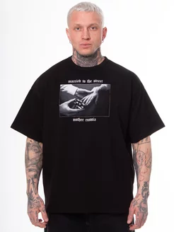 Футболка оверсайз с принтом Темно тут у вас черная хлопок