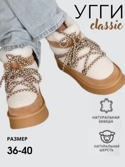 Угги натуральные со шнуровкой и подкладкой из шерсти
