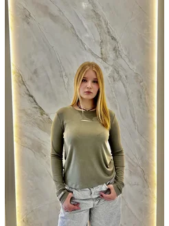 Лонгслив обтягивающий трикотажный кофта с вырезом на груди