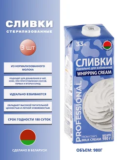 Сливки для взбивания 33% кондитерские 3шт по 980 г