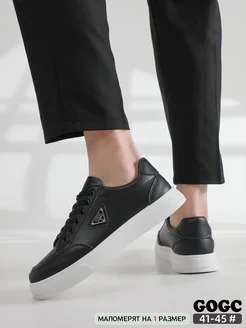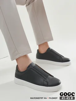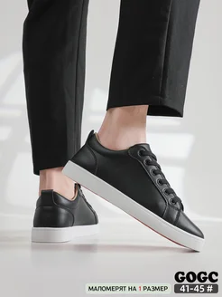 кеды чёрные с белой подошвой кожаные без шнурков G6966M-1