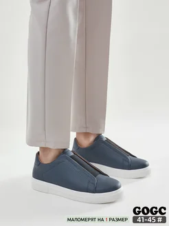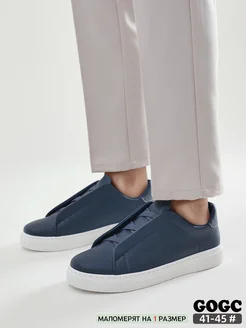 кожаные слипоны синие кеды демисезонные без шнурков G6966M-7