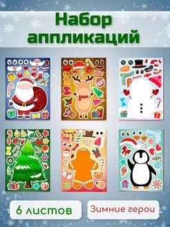 Набор аппликаций 6 листов Новогодние аппликации наклейками