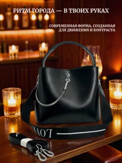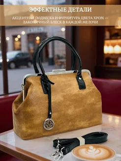 Сумка-саквояж из экокожи с подвеской и ремнем