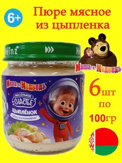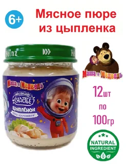 Цыпленок пюре мясное с 6 мес. 6 штук. 100 гр. Маша и Медведь