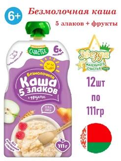 Безмолочная каша детская 5 злаков + фрукты в пауче 12шт