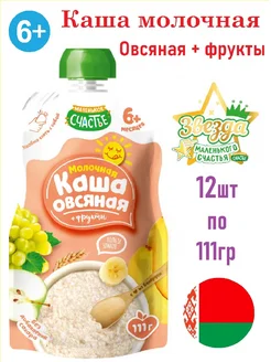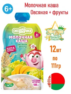 Каша молочная овсяная + фрукты в пауче 12шт Смешарики