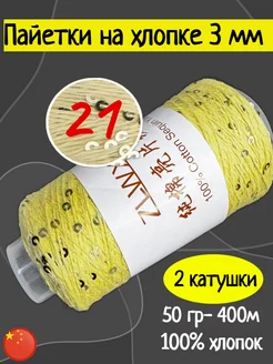 Пряжа микропайетки на хлопке 3 мм цвет 21 2 шт