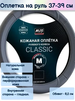 Оплетка на руль натуральная кожа GL-920M-GR M, серый