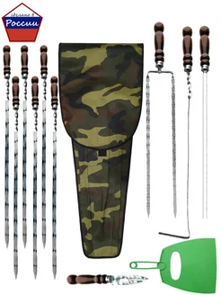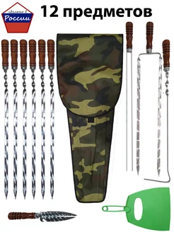 Набор шампуров с деревянной ручкой для шашлыка в чехле 12шт