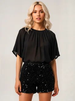 Вечерние шорты с пайетками короткие