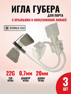 Игла Губера для порта с инфузионной линией 22G-20 мм 3 шт