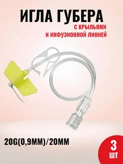 Игла Губера для порта с инфузионной линией 20G-20 мм 3 шт