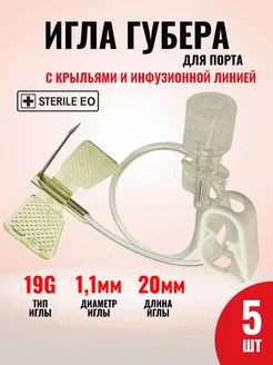 Игла Губера для порта с инфузионной линией 19G-20 мм 5 шт