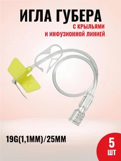 Игла Губера для порта с инфузионной линией 19G-25 мм 5 шт