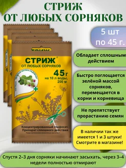 Гербицид от сорняков сплошного действия Стриж 45г 5шт