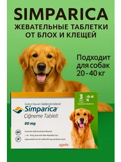 Симпарика таблетки для собак от блох и клещей 80мг 20-40кг