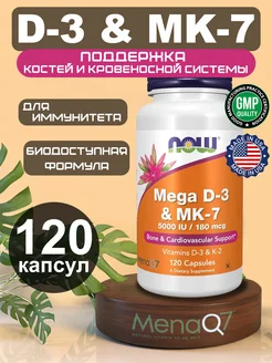 Mega D-3 & MK-7, Витамин Мега Д-3 и K-2 (МК7) 120 капсул