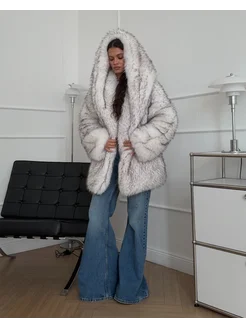 Шуба искусственная с капюшоном короткая экомех 2025 2026