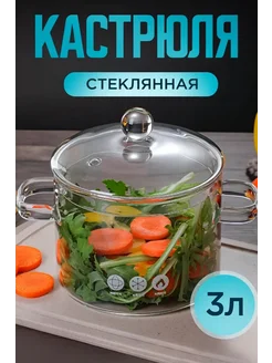 Кастрюля 3 л стеклянная термостойкая с крышкой