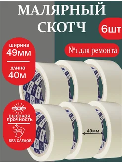 скотч малярный 49мм 6шт