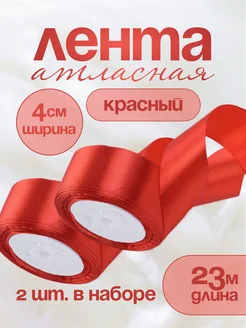 Лента атласная 4 см х 23м набор красная 2 штуки