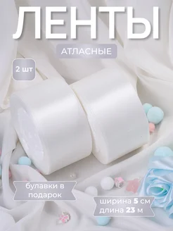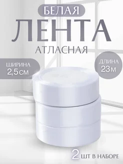 Лента атласная 2 5 см х 23м набор белая 2 штуки