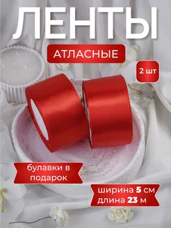 Лента атласная 5 см х 23м набор красная 2 штуки