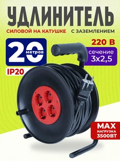 Удлинитель на катушке 20 м силовой 3x2,5 мм сетевой