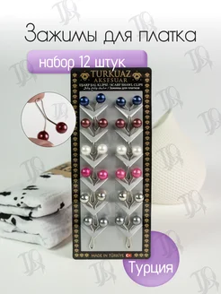 Зажимы фиксации платка "Жемчуг"разноцветные 12 штук