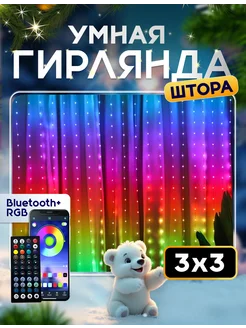 Умная гирлянда Smart штора на окно 3х3 метра на usb